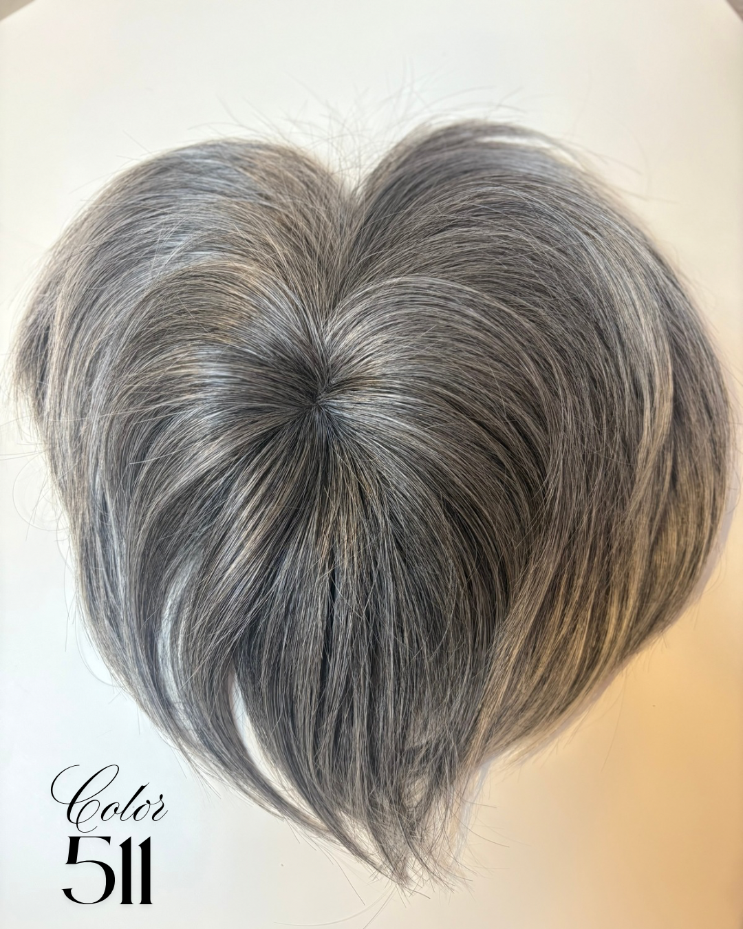 It’s the perfect little piece for adding density and coverage to fine, thin hair. Short and sleek and ideal for chin-length layers or shorter hairstyles. The sheer lace front and monofilament base allow for a beautifully natural look. The center front clip can be easily removed if desired.