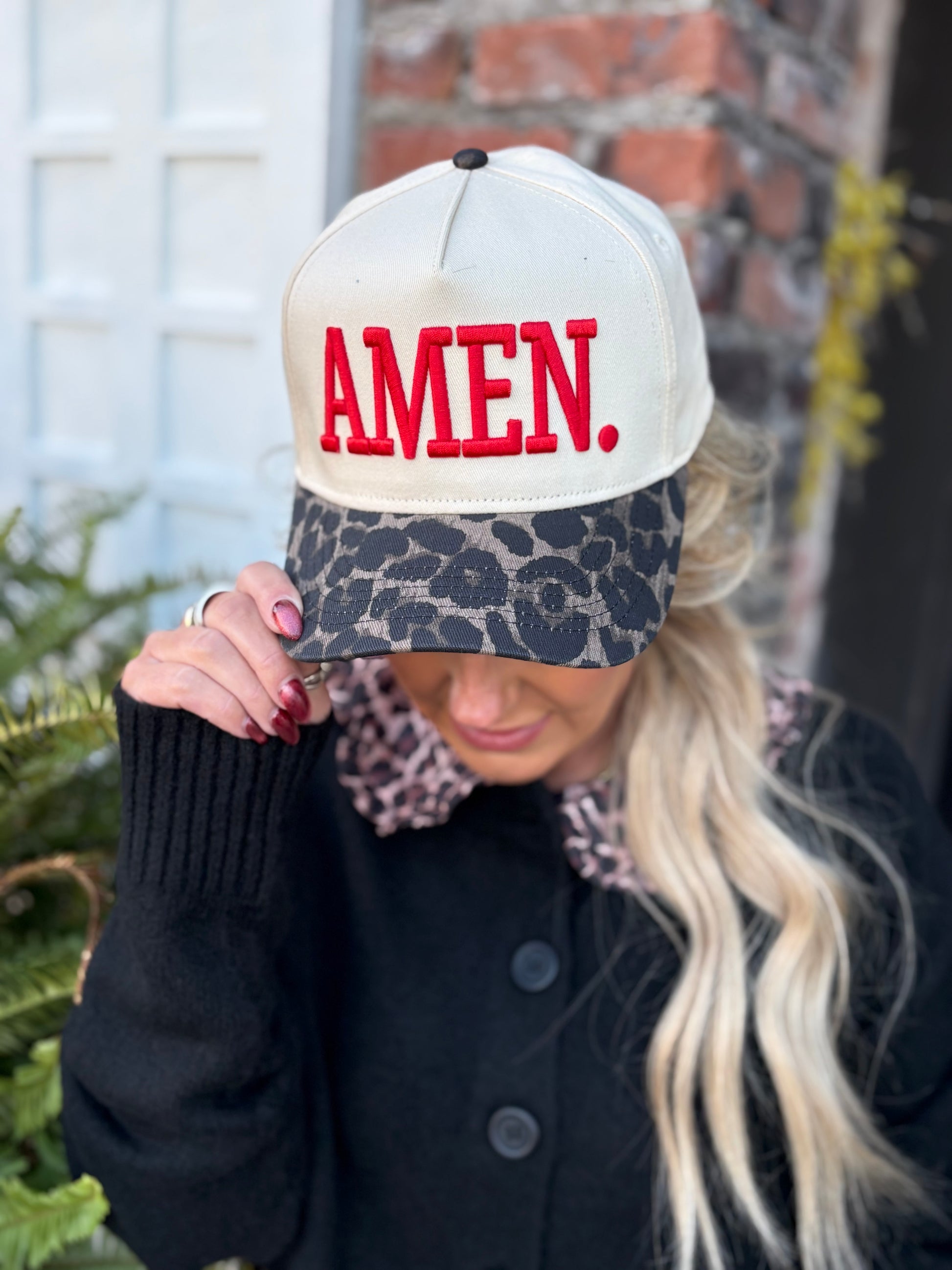 Say amen to style with this leopard-billed “Amen” hat! The perfect mix of bold faith and a little wild flair, this cap adds a trendy twist to your everyday look. Adjustable fit, comfy wear, and a message that never goes out of style.