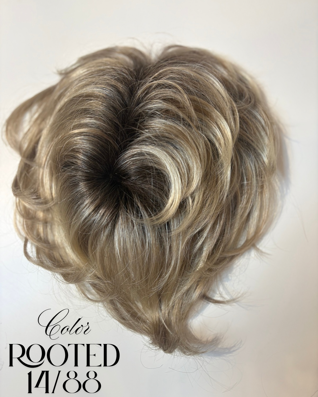 Soft waves on a monofilament top allow for contemporary styling options with parting flexibility. Lightweight and flexible, Leah is suited for use with short to chin-length styles that need extra fullness. This handy piece can also be used to give an updo a sophisticated finish.