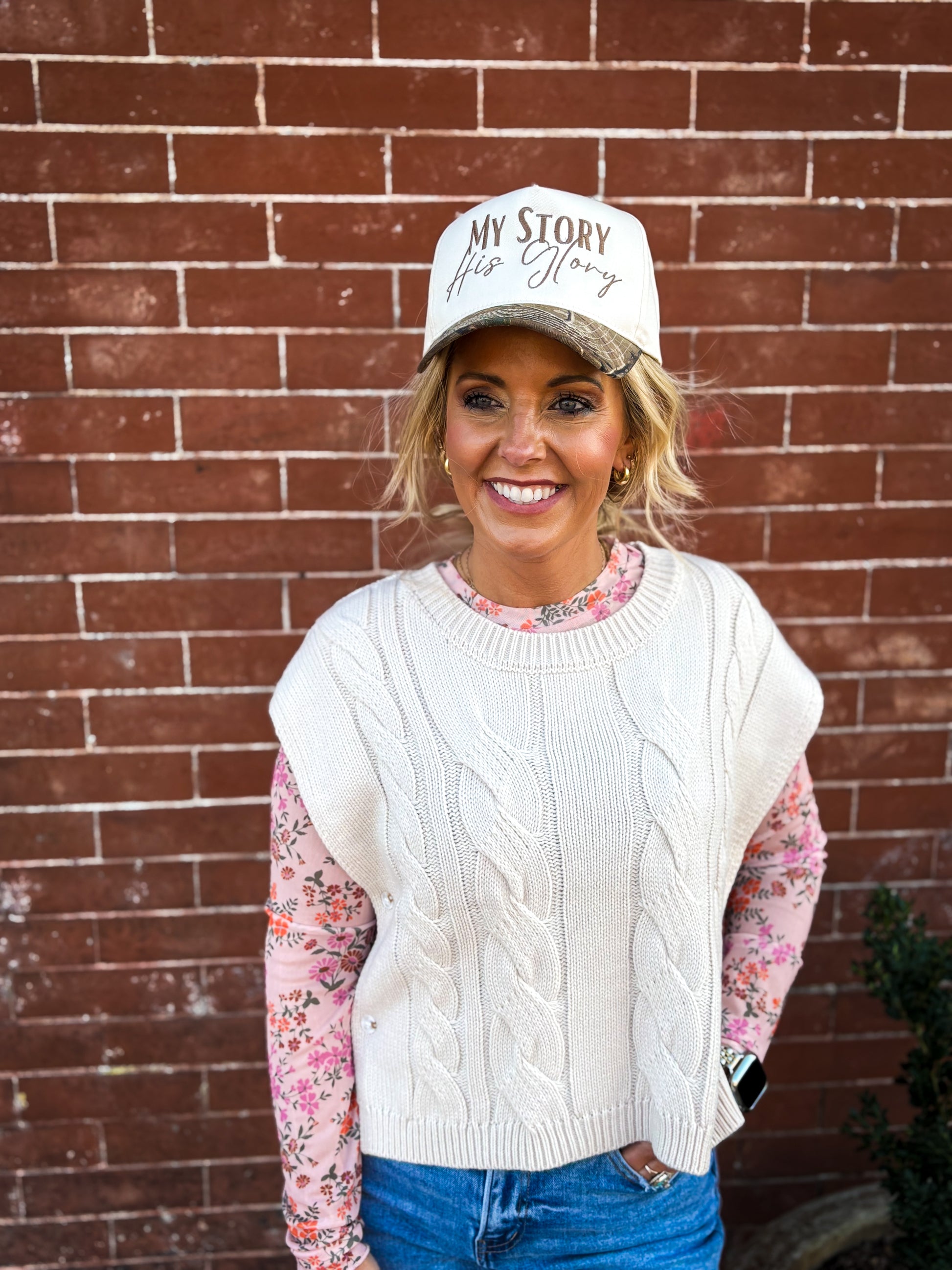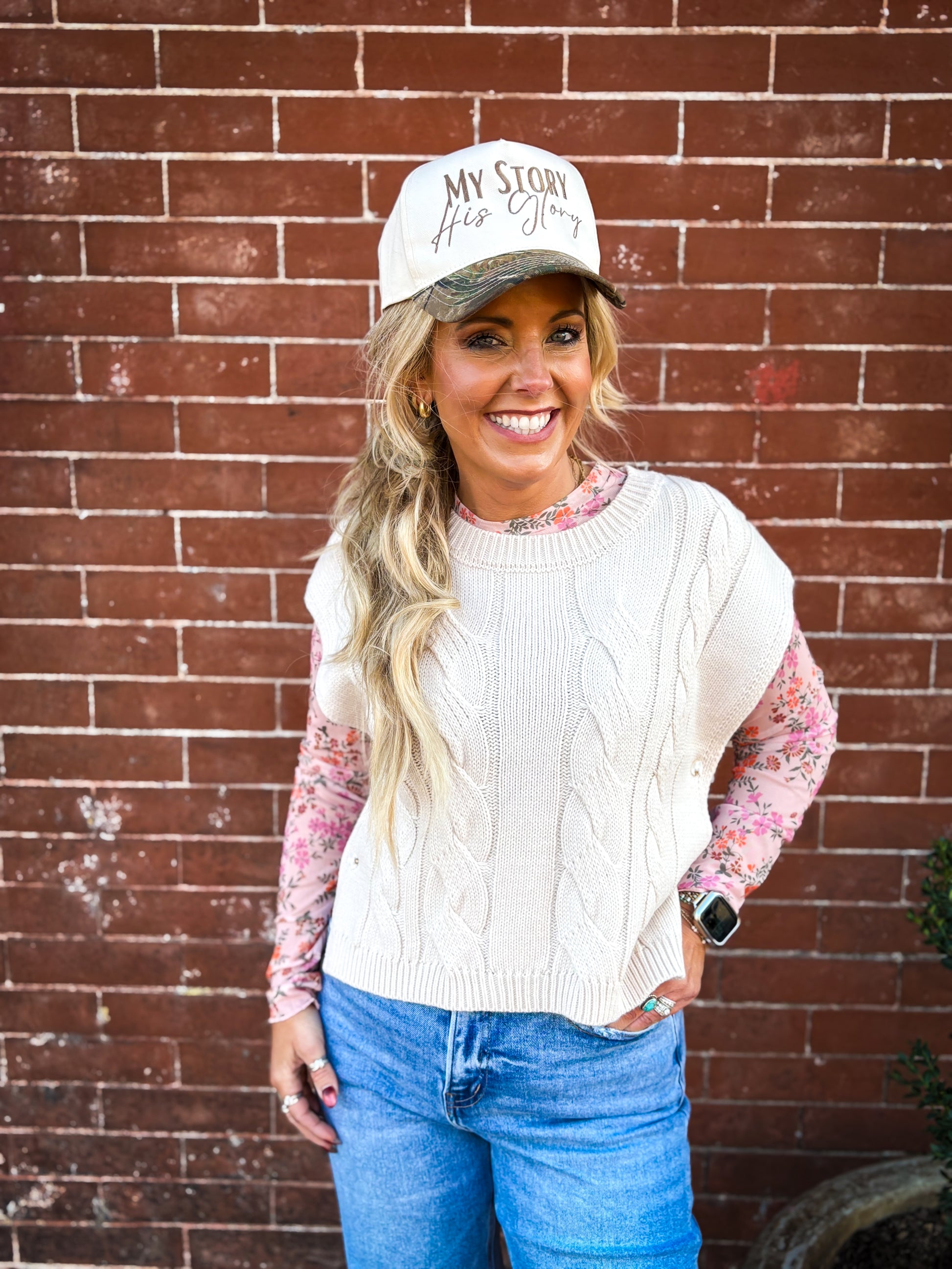 hare your faith and style with the My Story His Glory hat — a perfect blend of purpose and design. This cap features a bold embroidered message across the front, reminding you and those around you that every chapter of your life points back to Him. The camo-patterned bill adds a rugged, outdoorsy touch, while the structured crown and adjustable strap ensure a comfortable, secure fit.