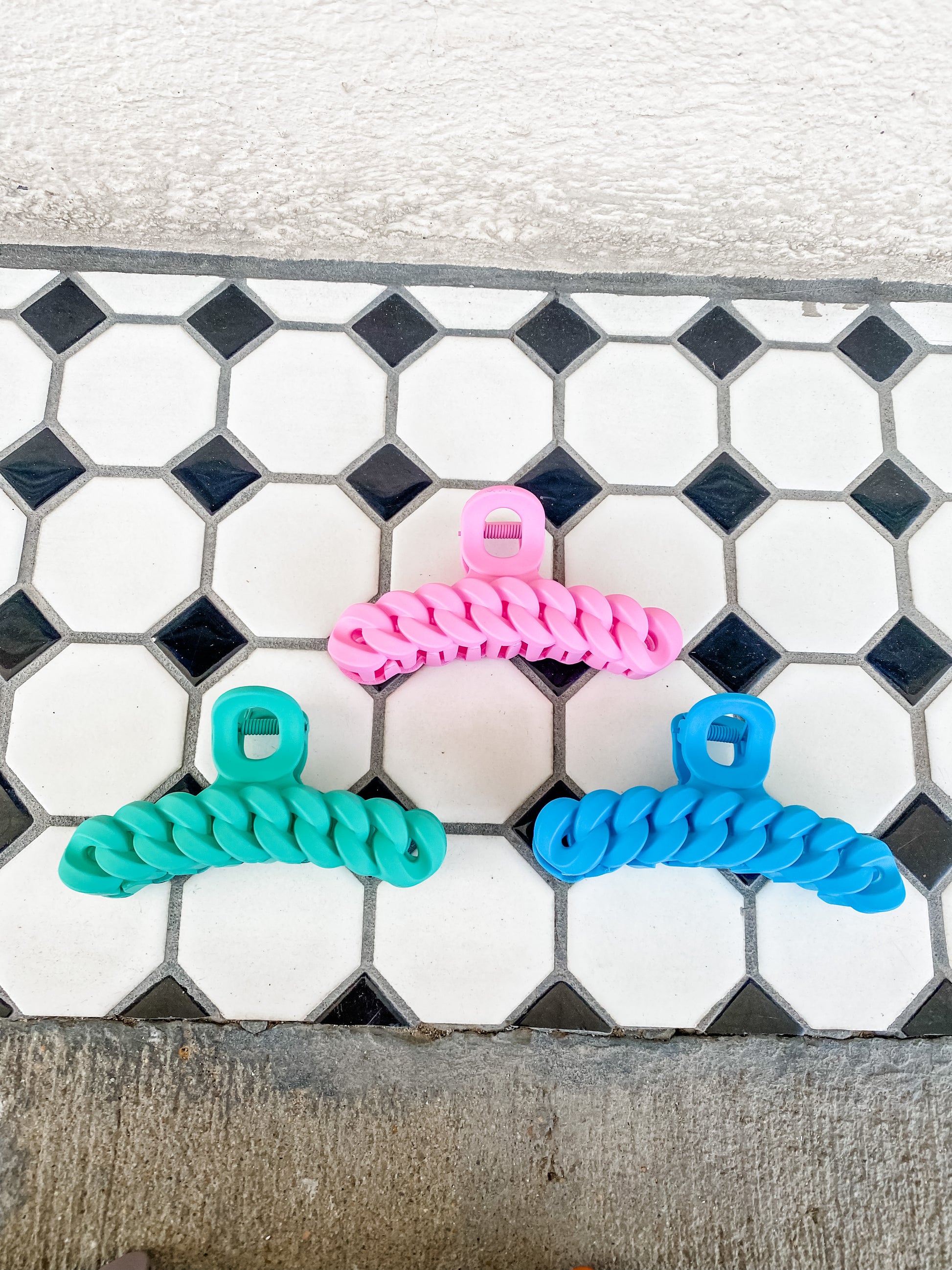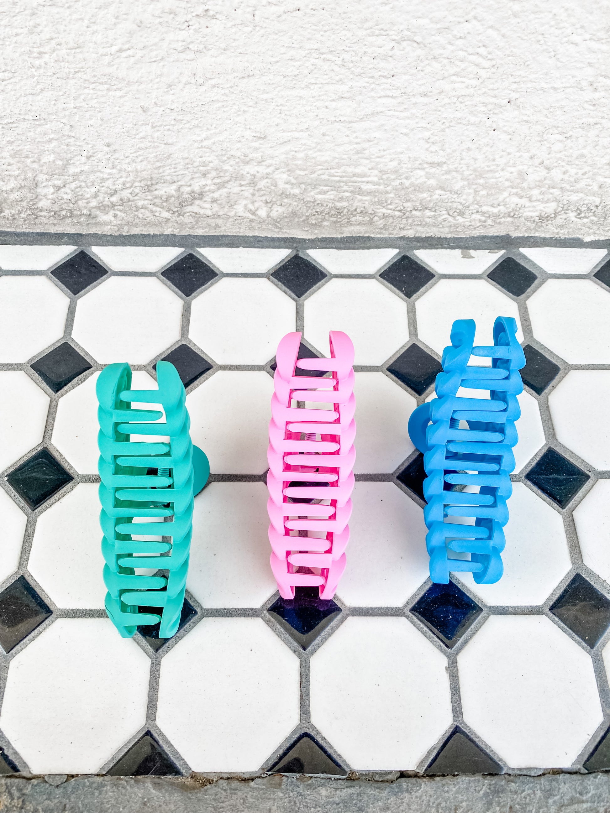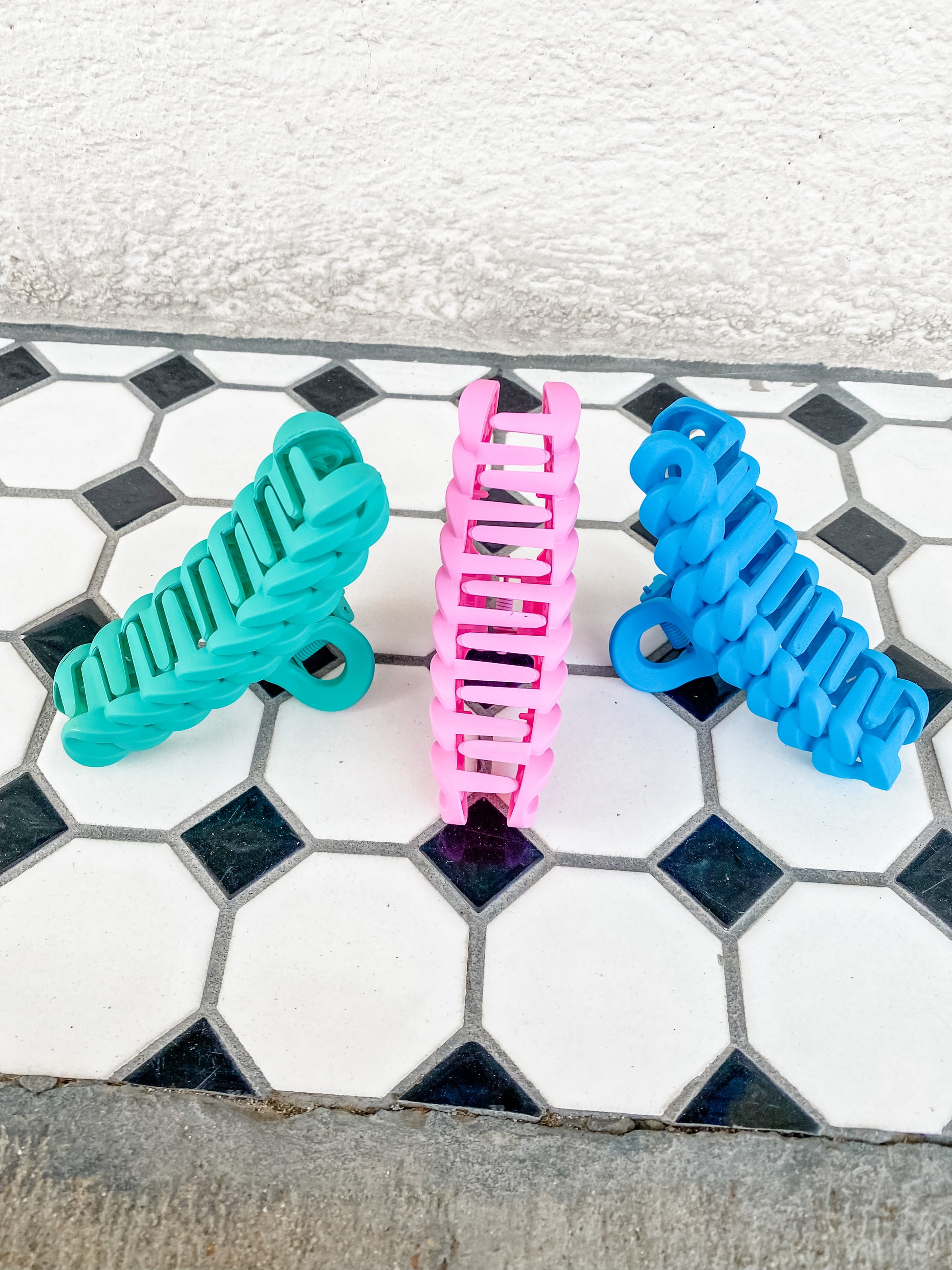 We love this claw clips! A strong claw clip that will hold all your hair up! Fun bright colors to add a pop to every outfit! The braided detail adds a little extra flare that your other clips don't have!