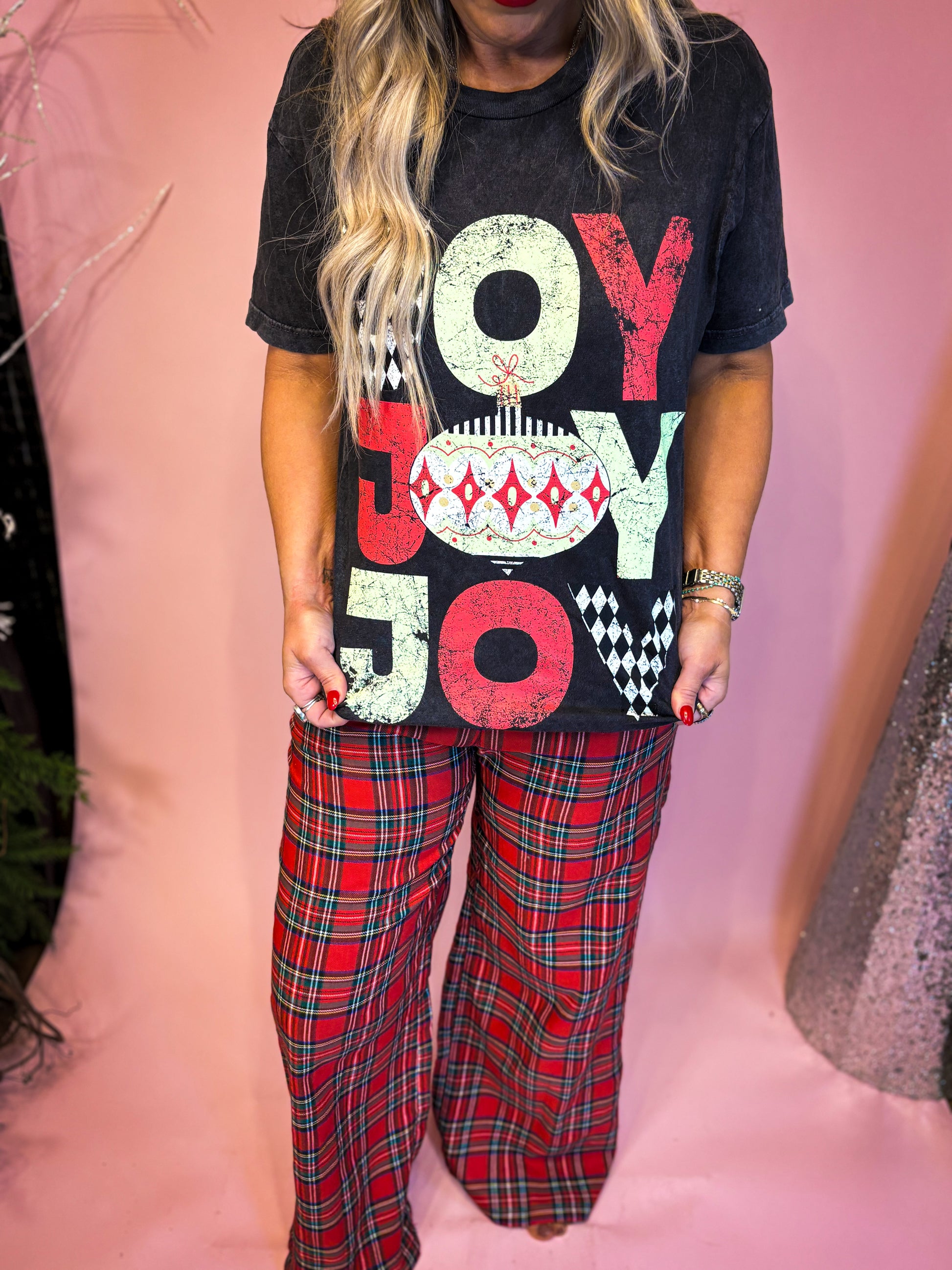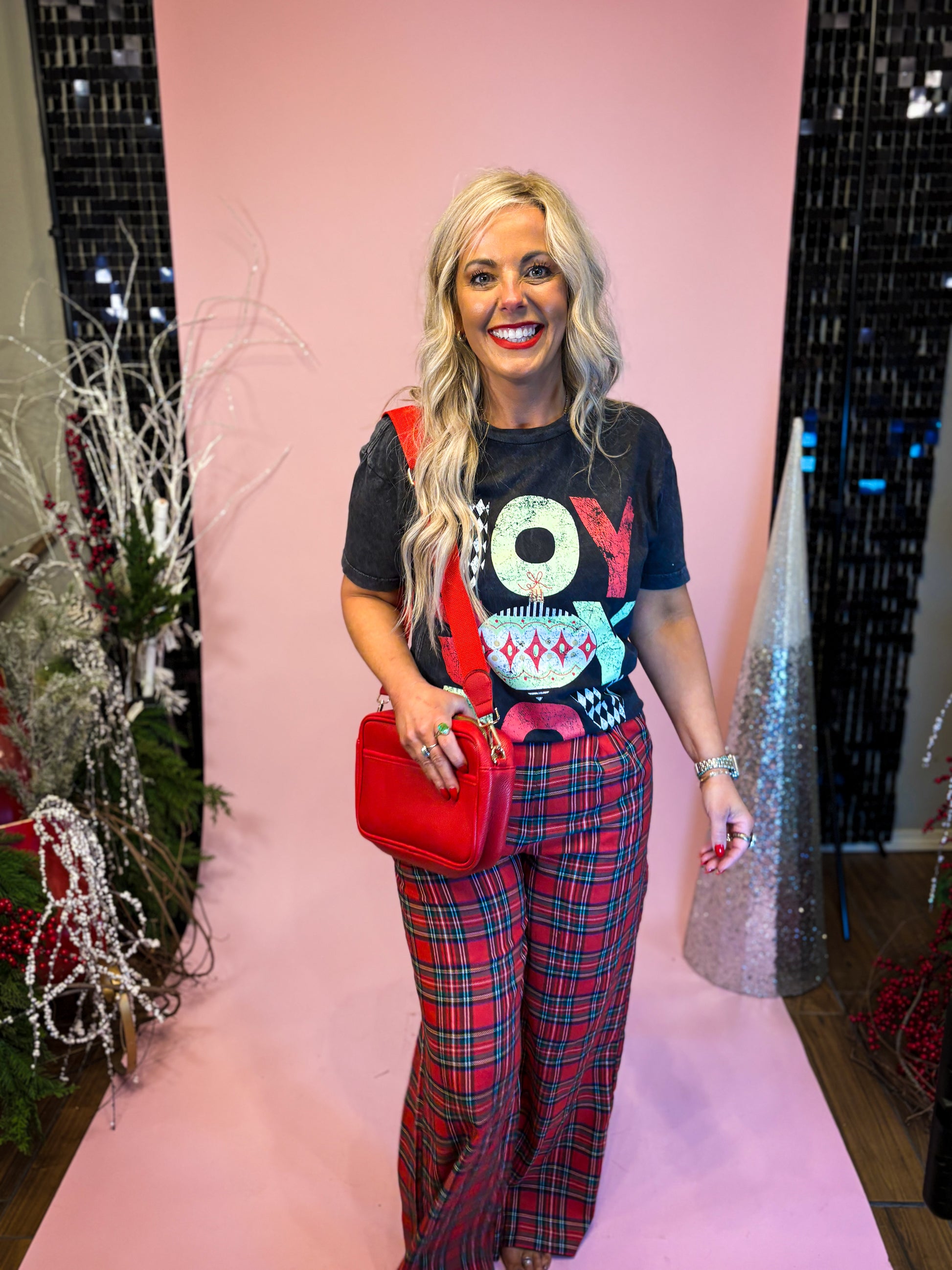 Crystal is wearing a small. She paired this cheerful graphic with our Merry in Plaid pants.