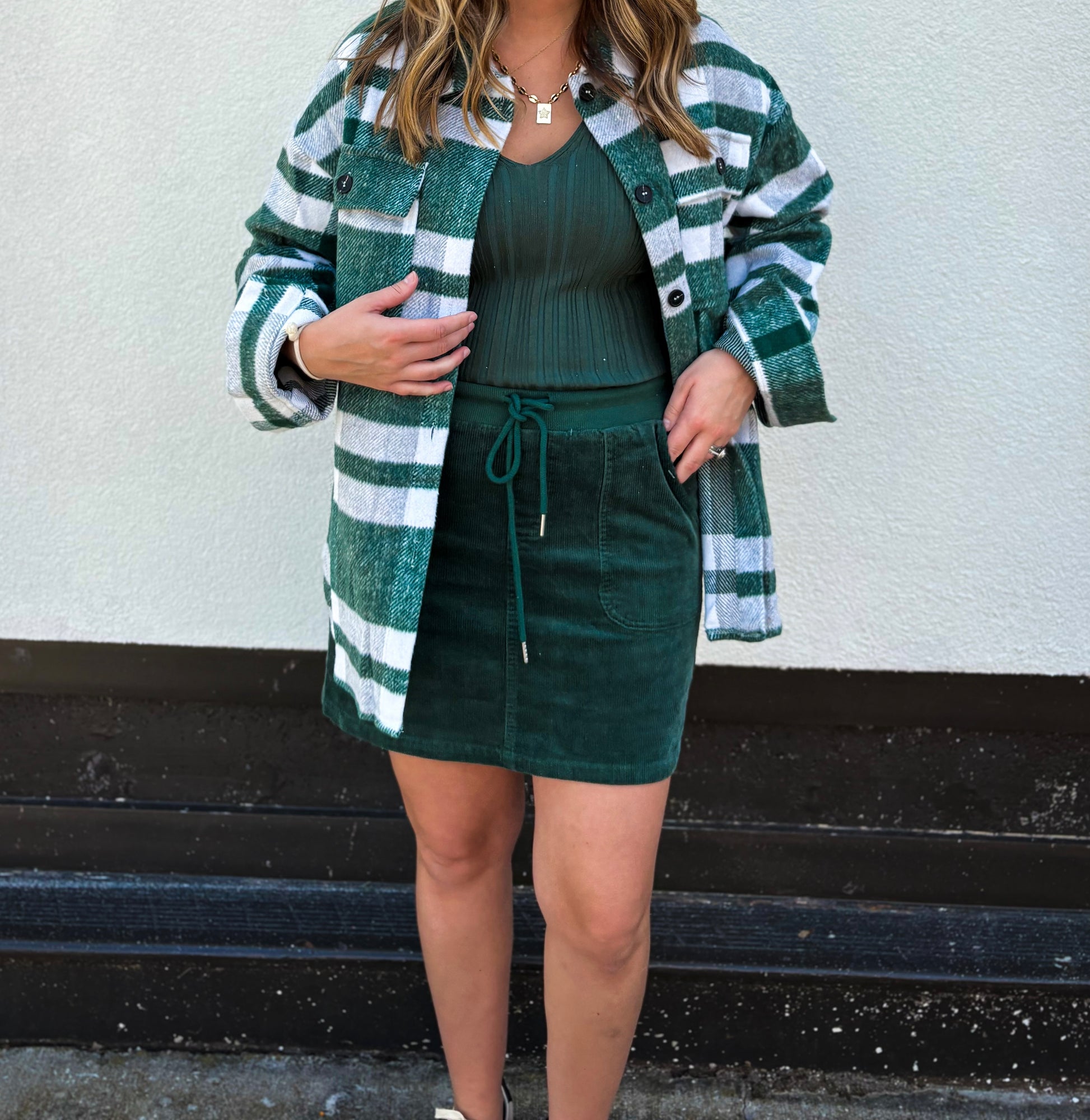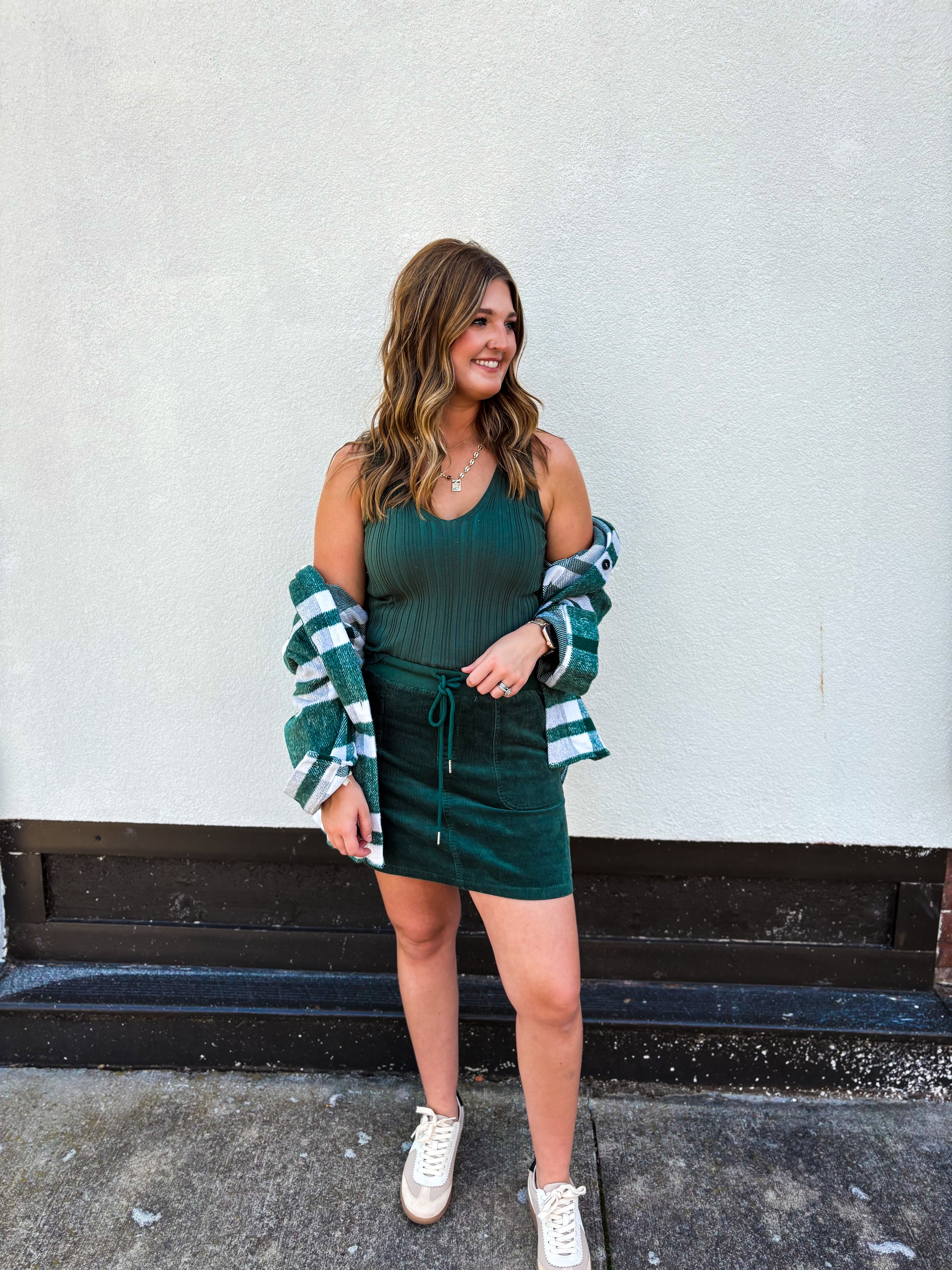 The perfect layering tank that not only adds a layer but a texture! It pairs perfectly with our Green Sutton Shacket and The Mini Cord Skirt. The style options are truly endless.
